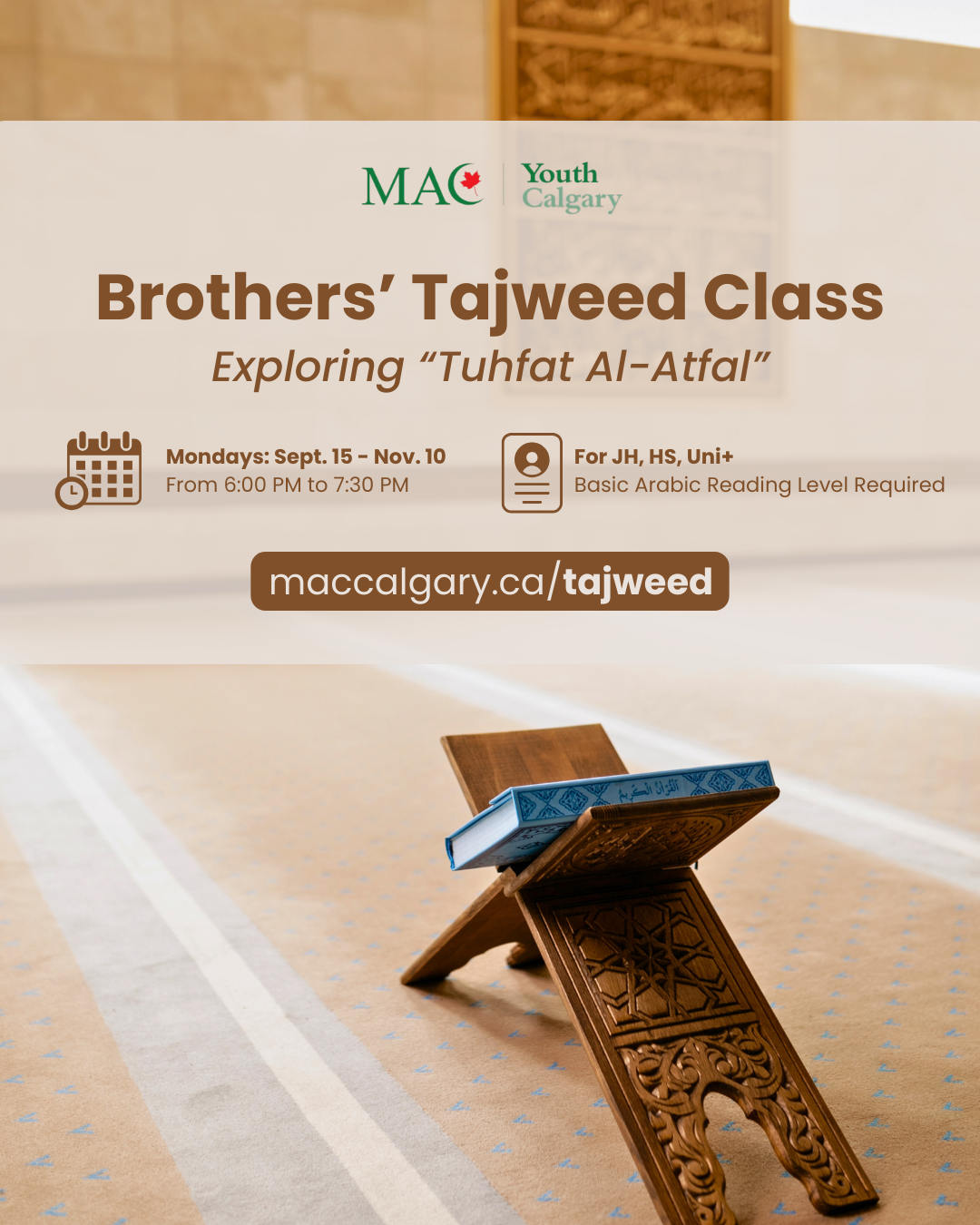 | Dates: Sep 29, Oct 13, Oct 27, & Nov 10 | Time: 6:00 PM - 8:30 PM | Location: Al-Salam Centre (6415 […]