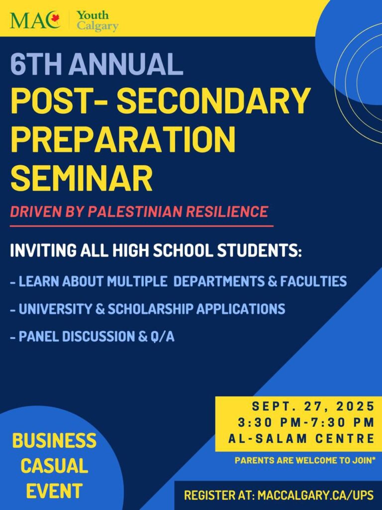 | Date: Saturday, September 27, 2025 | Time: 3:30 PM – 7:30 PM | Location: Al-Salam Centre (6415 Ranchview Dr NW) | Registration Fee: $5 per participant | Grades: 9 – 12 (Parents are Welcome) | […]
